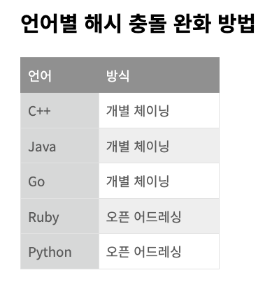 이때 버킷은 링크드 리스트나 트리를 사용합니다.