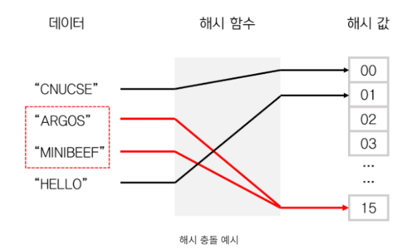 이렇게 Hash Function 사용 시에는 주의해야 할 점이 있습니다. 해시 함수는 입력 값의 길이가 어떻든 고정된 길이의 값을 출력하기 때문에 입력값이 다르더라도 같은 결괏값이 나오는 경우가 있습니다. 이를 해시 충돌이라고 하며, 해시 충돌이 적은 함수가 좋은 해시 함수라고 부릅니다. 이때 적은 것뿐 아니라 해시 충돌이 균등하게 발생하도록 하는 것 또한 중요합니다. 모든 키가 같은 해시값이 나오게 되면 데이터 저장 시 비효율성이 커지고 보안이 취약해져서 좋지 않겠죠??