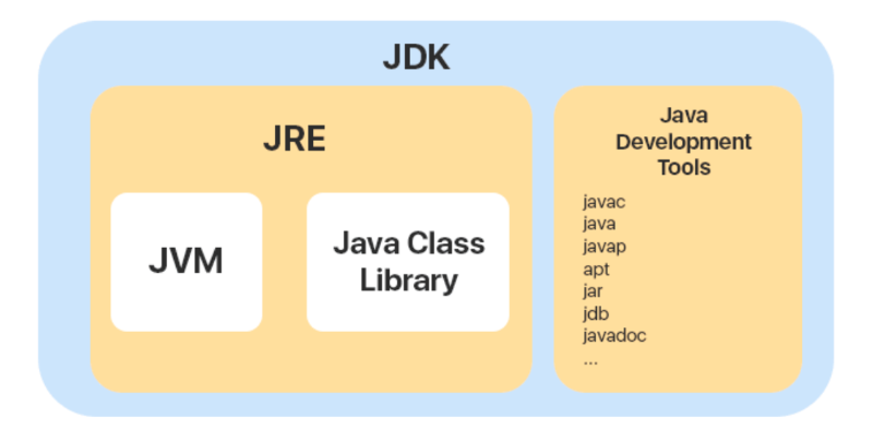 이러한 JDK안에는 자바에서 개발 시 필요한 라이브러리뿐 아니라 여러 개발 도구 등이 있습니다.