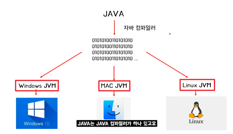 JVM은 바이트 코드를 해당 OS나 하드웨어 아키텍처에 알맞은 기계어로 해석 또는 실행하게 해주기 때문입니다.