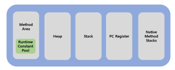 런타임 데이터 영역은 위 그림과 같이 Method Area, Heap Area, Stack Area, Pc Register, Native Method Stack으로 나뉩니다.