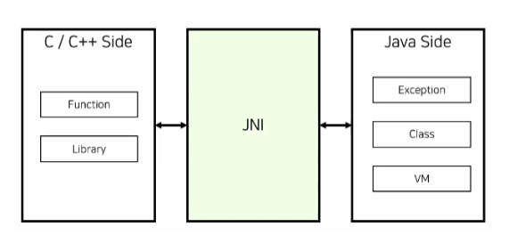 JNI는 자바가 네이티브 애플리케이션과 상호작용하도록 만들어진 프로그램입니다. JNI는 자바 코드에서 네이티브 메서드를 호출하거나 네이티브 코드에서 자바 객체를 사용한 등의 작업을 가능하게 합니다. 즉 JNI는 JVM 내부에서 실행되는 자바코드와 운영체제가 제공하는 API나 다른 소프트웨어 라이브러리와 같은 네이티브 코드 간의 다리 역할을 합니다.