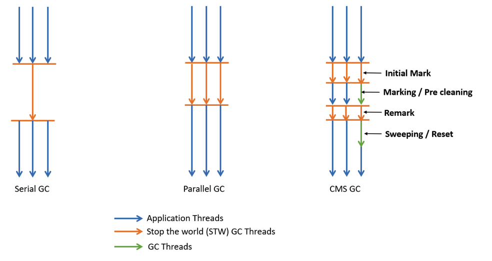 CMS GC는 애플리케이션 스레드와 GC 스레드가 동시에 실행되어 Stop-the-world 시간을 최대한 줄이기 위해 고안된 GC입니다.