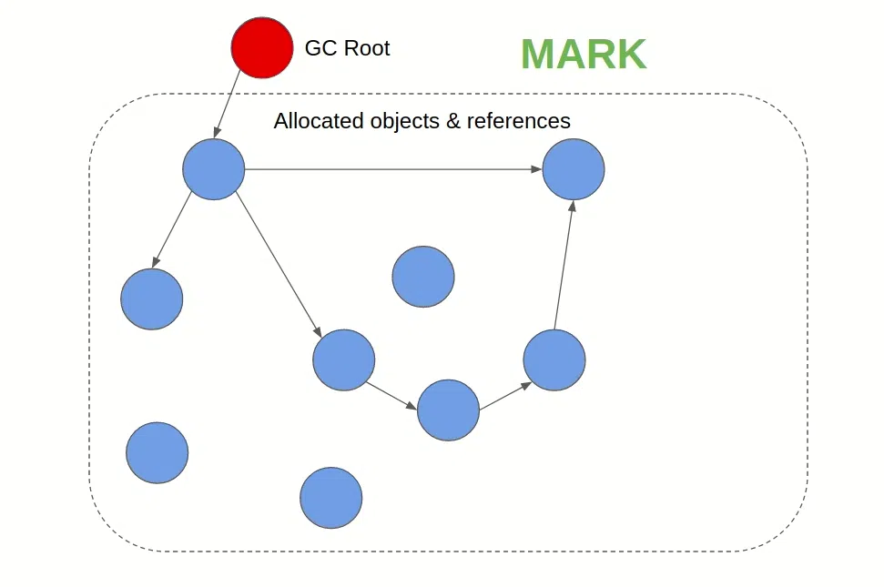 Mark And Sweep 알고리즘은 가비지 컬렉션이 동작하는 원리로 Root에서부터 해당 객체에 접근가능한지에 대한 여부를 메모리 해제의 기준으로 삼습니다. 이러한 Mark and Sweep은 총 3단계( Mark -> Sweep -> Compact)를 거치게 됩니다.