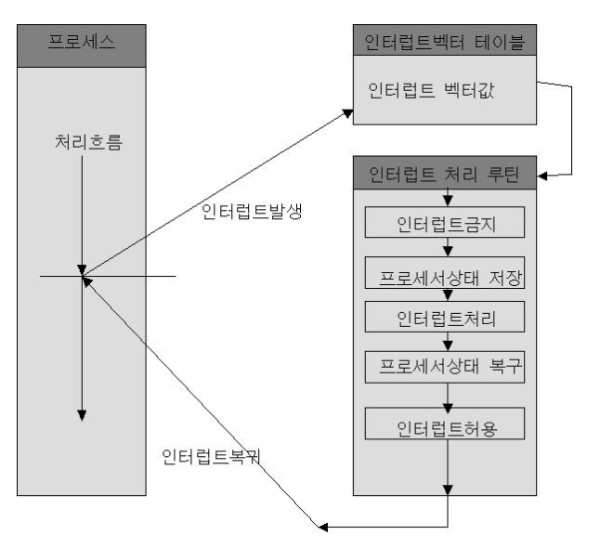 인터럽트에 따라 해야할 일들은 운영체제 커널에 프로그래밍 되어있습니다(개발자들에 의해)