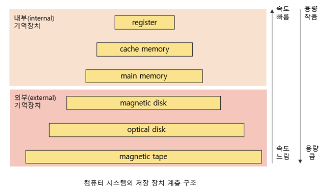 컴퓨터 시스템을 구성하는 저장장치의 게층구조는 다음과 같습니다.