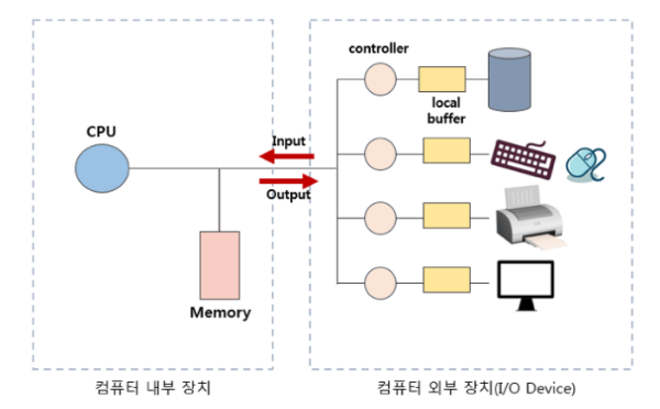 각 장치마다 설치되어 있는 컨트롤러에는 장치로부터 들어오고 나가는 데이터를 임시로 저장하기 위한 작은 메모리를 가지고 있는데 이를 로컬 버퍼라고 부릅니다.