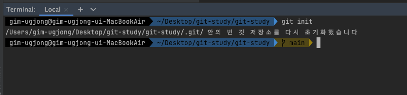 이후 해당 프로젝트의 터미널에서 git init을 입력