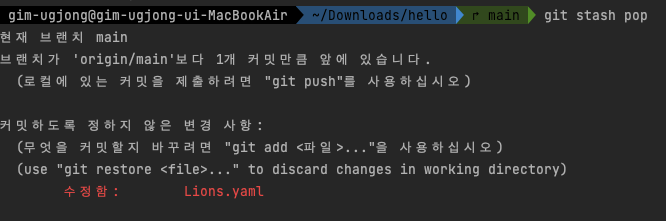 git stash pop을 하게 되면 해당 내용을 다시 불러올 수 있습니다 :)