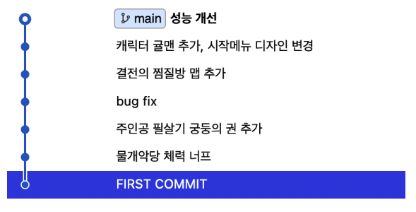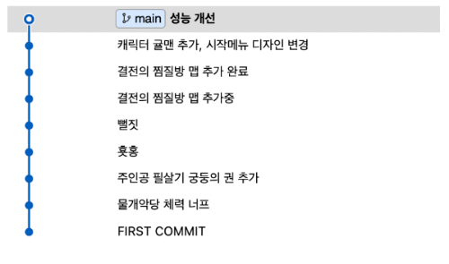 이후 분리하고자 하는 커밋앞에 e를 하고 wq를 하게 되면 캐릭터 귤맨 추가, 시작 메뉴 디자인 변경이라는 내용을 딱 커밋한 그 시점으로 돌아갑니다. 이때 이 커밋이 커밋 되기 이전 상황으로 돌리기 위해 git reset을 사용합니다.