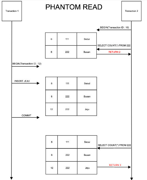 이 경우에 Dirty Read, Non Repeatable Read 문제는 발생하지 않지만 Phantom Read 문제가 발생할 수 있습니다.