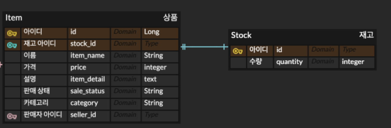 따라서 저는 우선 재고 정보를 별도의 테이블로 분리하는 설계를 선택하였습니다! 그리고 추후 성능 향상을 위해 다른 개념들에 대해 익히고 적용해 볼 예정입니다.