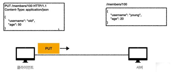 중요한 점은 요청 시 클라이언트가 리소스를 알고있다는 점입니다. 클라이언트가 PUT 메서드로 요청을 보낼때 리소스의 경로를 알고 URL을 지정합니다. 어떤 데이터를 대체할지를 알아야 요청을 보낼 수 있겠죠?? POST 메서드의 경우엔 클라이언트가 등록될 리소스의 경로를 모른다는 점에서 차이가 있습니다.